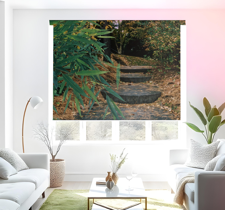 Αυτό το δασικό τοπίο με πέτρινα σκαλοπάτια και λουλούδια ρολό για σαλόνι που μπορεί να γίνει δικό σας σε διάφορα μεγέθη.