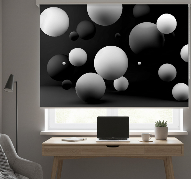 Μαύρο ρολό κουρτίνας με λευκές σφαίρες σε μαύρο φόντο