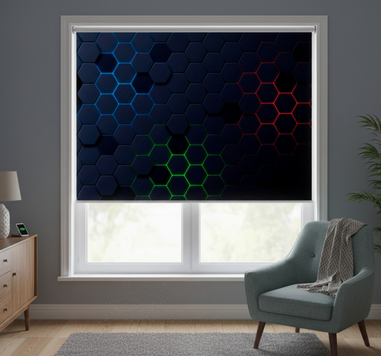 Μαύρο ρολό κουρτίνας με 3d εφέ σκούρου εξαγωνικού σχεδίου