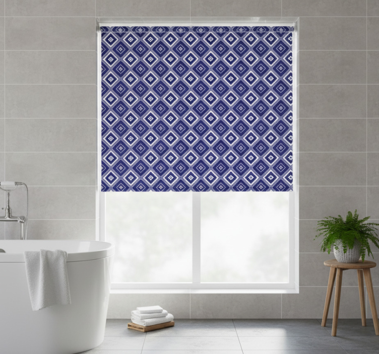 Μπλε ρολό κουρτίνας με μοτίβο μπλε διαμαντιού