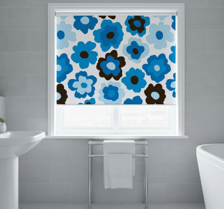 Mπλε ρολό κουρτίνας με μπλε παπαρούνα