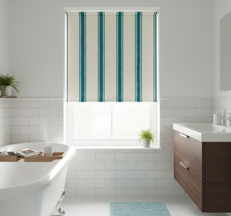 Μπλε ρολό κουρτίνας με κάθετες γραμμές ανοιχτού μπλε