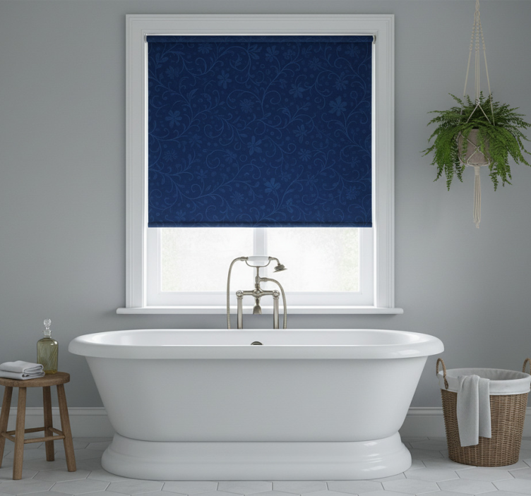 Mπλε ρολό κουρτίνας με μοτίβο ναυτικού λουλουδιού