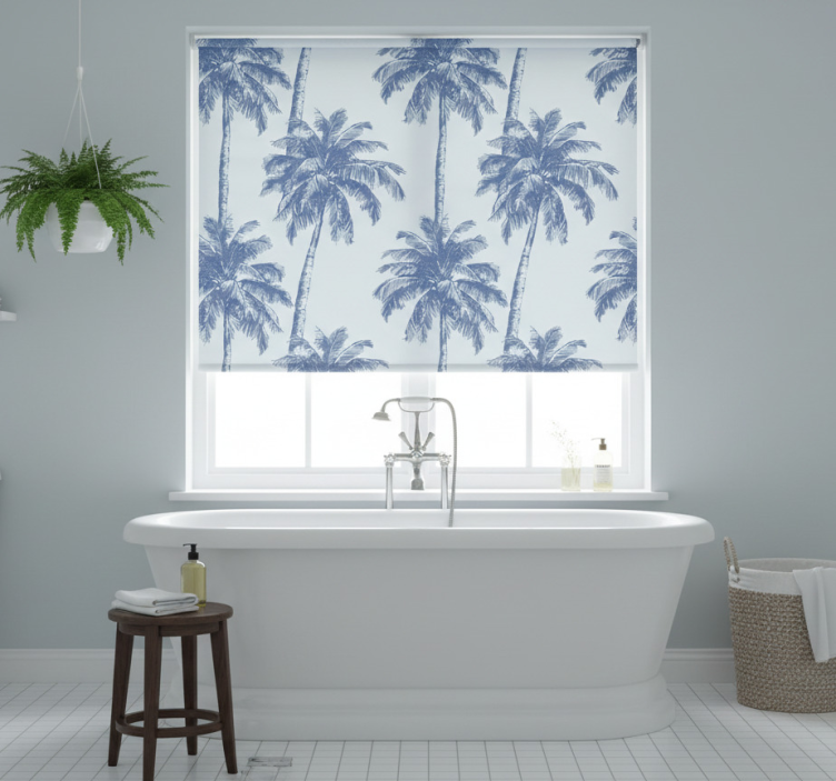 Mπλε ρολό κουρτίνας με σχέδιο φοίνικες