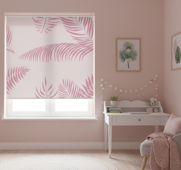 Ροζ ρολό κουρτίνας με μεγάλα φύλλα φοινίκων