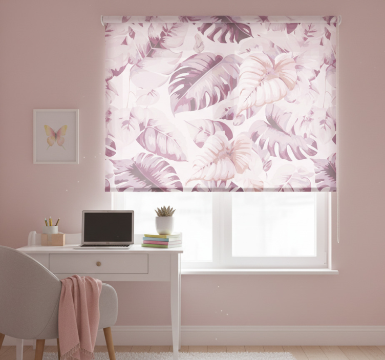 Ροζ ρολό κουρτίνας με μεγάλα τροπικά φύλλα
