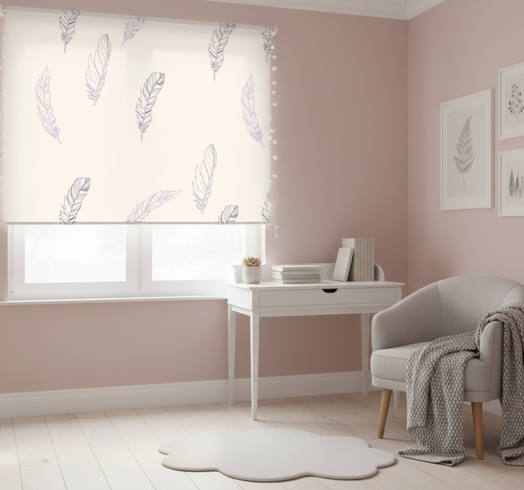 Ροζ ρολό κουρτίνας με σχέδιο από πούπουλα