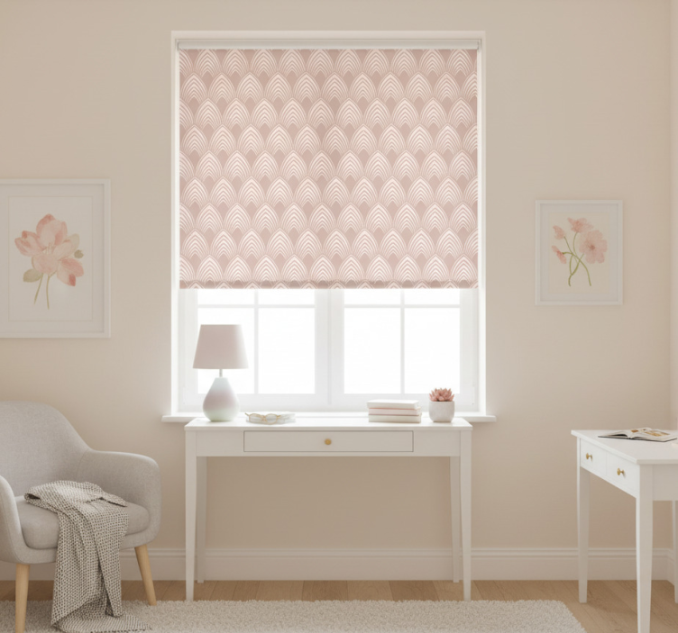 Ροζ ρολό κουρτίνας με vintage γεωμετρικό σχέδιο