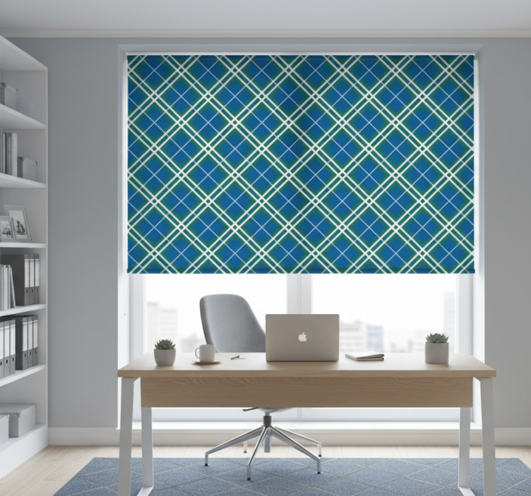 Ρολό τυφλό γραφείο στο σπίτι σε μπλε και πράσινο ταρτάν