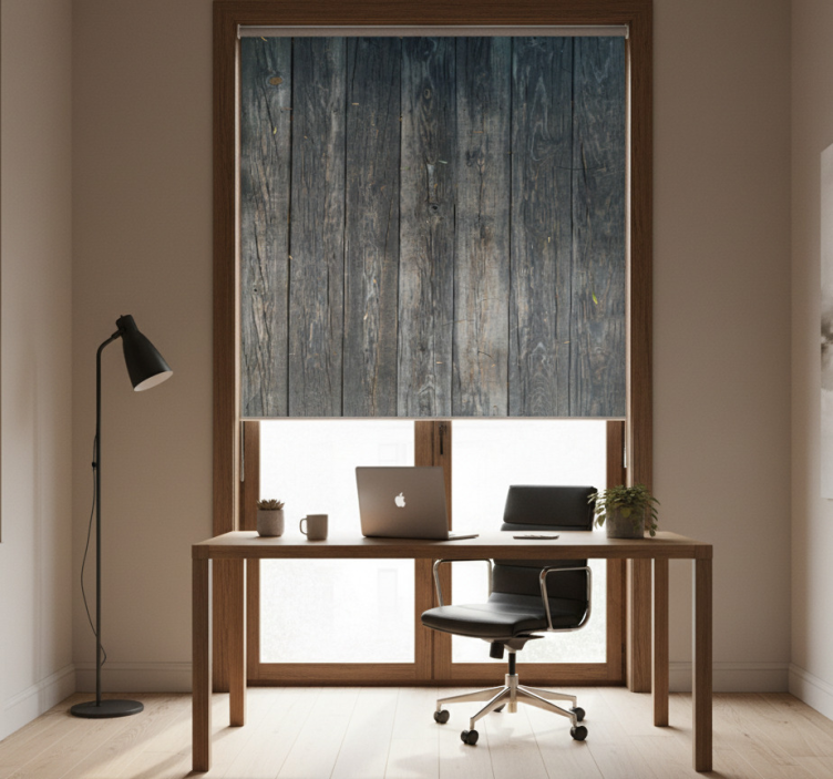Ρολό τυφλό γραφείο στο σπίτι με γκρίζο σπαστό ρουστίκ σχέδιο
