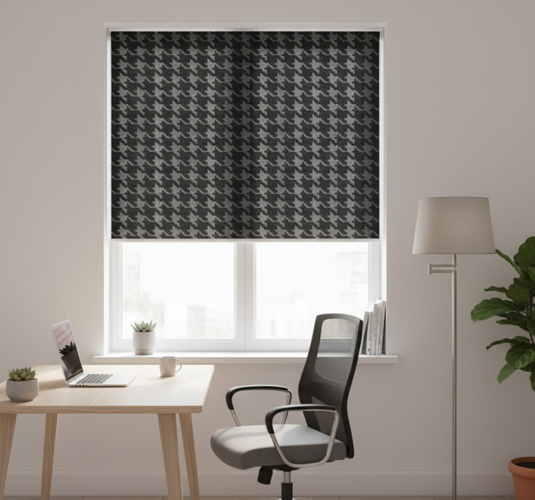 Ρολό τυφλό γραφείο στο σπίτι σε σχέδιο καρό