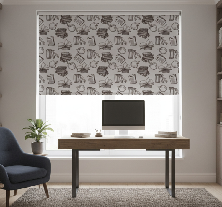 A home office blind Ρολό τυφλό γραφείο στο σπίτι vintage μελέτης στοιχεία kiválóan alkalmazható otthoni munkakörnyezetben. Könnyen telepíthető, és lehetőséget ad arra, hogy testreszabhasd a fényviszonyokat az igényeid szerint. Legyen szó akár a munkahelyi magánéletről, akár az otthoni kényelemről, ez a redőny minden szempontból tökéletes választás!