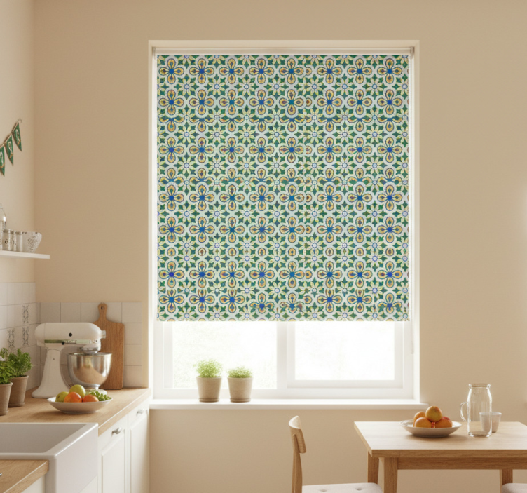 A Ρολό κουζίνας με κίτρινα και μπλε πορτογαλικά πλακάκια nemcsak egy egyszerű redőny, hanem a konyha szívének fénypontja is! Az élénk színek és a különleges minták remekül harmonizálnak bármilyen konyhai stílussal, legyen az modern vagy klasszikus. Ezen kívül a redőny funkciója lehetővé teszi, hogy megvédje a helyiséget a közvetlen napfénytől, miközben biztosítja a magánéletet. Mindezek mellett a szobahőmérséklet szabályozására is tökéletesen alkalmas, így nyáron kellemes hűvös légkört teremt, télen pedig megőrzi a meleget!