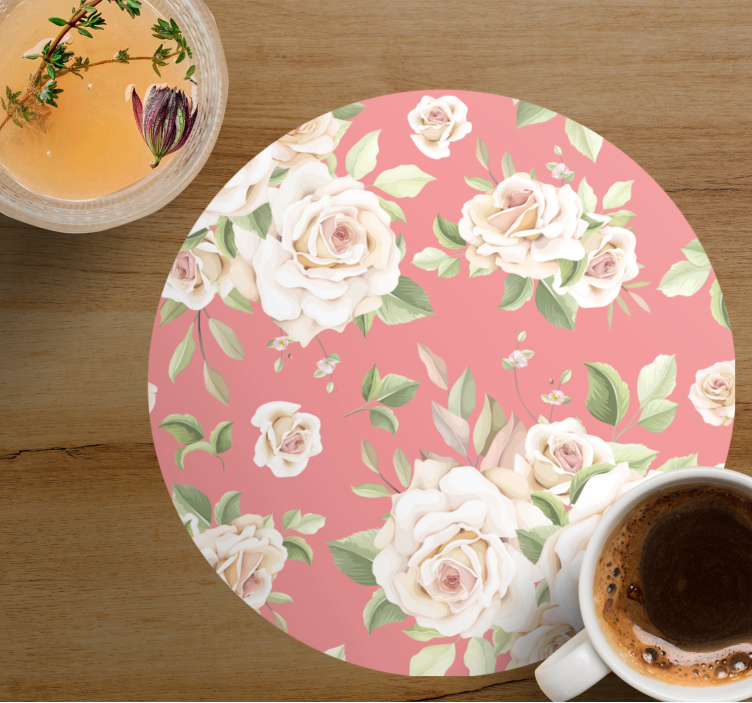 Πληροφορίες Vintage ροζ τριαντάφυλλα πάνω από το λευκό μοντέρνο coaster ποτών