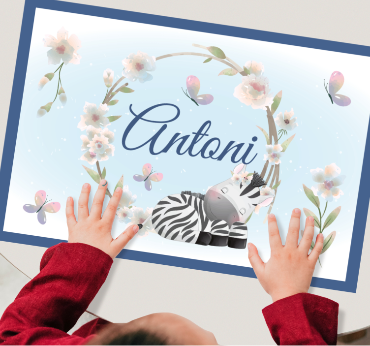 Κινούμενα σχέδια ζέβρα βινύλιο χαλί με προσαρμοσμένο όνομα.