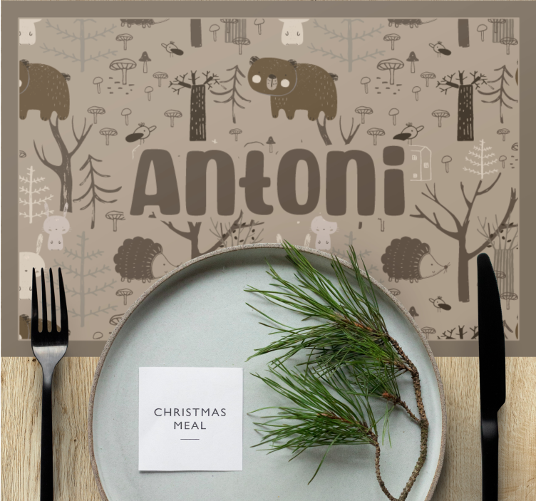 Απολαύστε να διακοσμείτε τα πάντα στο σπίτι σας, ακόμα και τους χώρους του φαγητού σας. Αυτό είναι κάτι περισσότερο από μια όμορφη εμφάνιση. Το σχέδιο έχει ένα μπεζ φόντο με ζωάκια σε σιλουέτες δάσους και ένα προσαρμοσμένο όνομα για να επιλέξετε. Είναι κατασκευασμένο με ανθεκτική επιφάνεια που είναι ασφαλής για το δέρμα σας και πλένεται εύκολα. Αποκτήστε το τώρα και απολαύστε την αισθητική. Εναρμονίστε την εμφάνιση των συγκεντρώσεων σας γύρω από το φαγητό και μην ανησυχείτε για τον καθαρισμό. Το σχέδιο είναι τέλειο για παιδιά. Μπορείτε να πάρετε κάθε μονάδα με διαφορετικό όνομα. Σουπλά μπεζ μοτίβο δάσους κινουμένων σχεδίων.