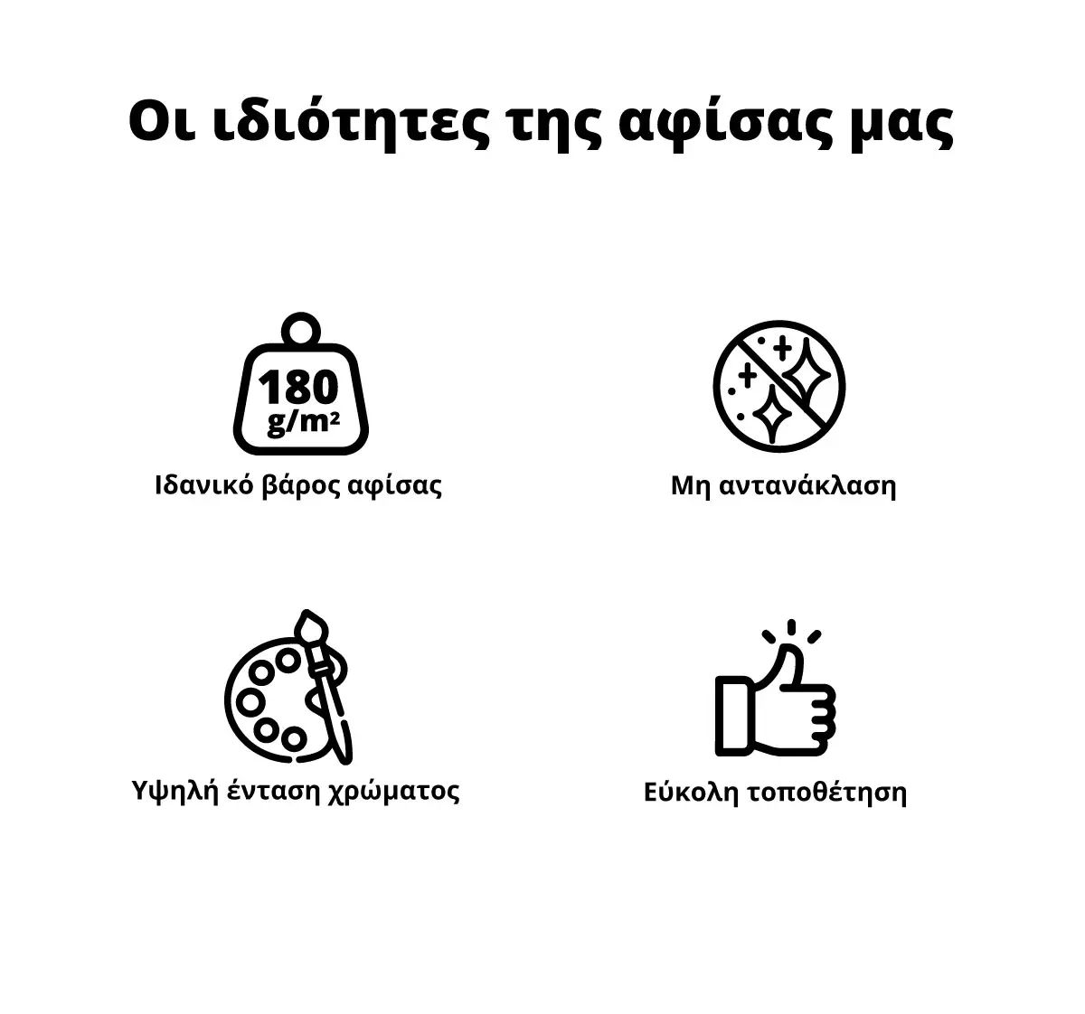 Ποιοτική αφίσα κατασκευασμένη σε non woven χαρτί τοίχου πάχους 180 γραμμαρίων/m2. Είναι τυπωμένο με ποιοτικό μελάνι, είναι ματ και εγγυημένα θα διαρκέσει για πολύ μεγάλο χρονικό διάστημα χωρίς να ξεθωριάσει, να χάσει το χρώμα και είναι φιλικό προς το περιβάλλον.