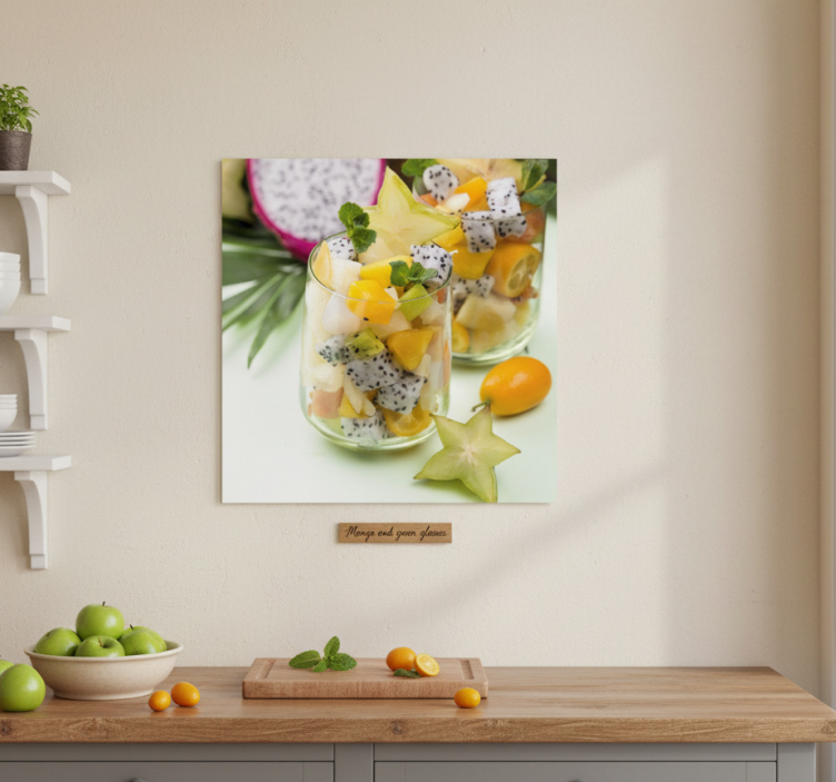 Η Aφίσα κουζίνας Αφίσα κουζίνας Μάνγκο και πράσινα γυαλιά είναι η τέλεια επιλογή για να προσθέσετε ζωντάνια και χαρακτήρα στην κουζίνα σας! Ενσωματώνει στυλ και χρώμα, μεταμορφώνοντας τον χώρο σας σε ένα ευχάριστο και φιλόξενο περιβάλλον. Αφήστε την αφίσα να μιλήσει για το γούστο σας και να εμπνεύσει την οικογένεια και τους φίλους σας! Κάθε ματιά θα γεμίζει από χαρά και θετική ενέργεια!