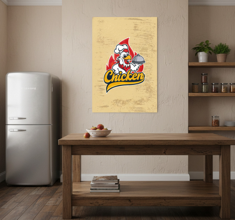Η Αφίσα κουζίνας με vintage κοτόπουλο σεφ είναι μια μοναδική προσθήκη στην κουζίνα σας, συνδυάζοντας την παραδοσιακή αισθητική με μια μοντέρνα πινελιά. Το σχέδιο απεικονίζει ένα γοητευτικό κοτόπουλο σεφ, το οποίο είναι ζωγραφισμένο με έντονες και ζωντανές αποχρώσεις, δημιουργώντας μια ατμόσφαιρα ζεστασιάς και φιλόξενης διάθεσης. Με 180g/m2 grammage και ημι-ματ φινίρισμα χωρίς αντανακλάσεις, αυτή η αφίσα ενσωματώνει την υψηλή χρωματική ένταση για να ζωντανέψει τον τοίχο σας.
