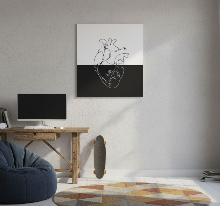 Η Aφίσα έφηβου δωματίου Γεωμετρική γραμμή καρδιάς είναι η τέλεια επιλογή για να μεταμορφώσετε το δωμάτιο του εφήβου σας! Με τους γεωμετρικούς συνδυασμούς και την καρδιά στο σχέδιο, προσφέρει μια αίσθηση ζωντάνιας και δημιουργικότητας. Είναι ιδανική για να εμπνεύσει τη φαντασία και να προσθέσει χρώμα στο χώρο, κάνοντάς τον να νιώθει πιο προσωπικός και ευχάριστος.