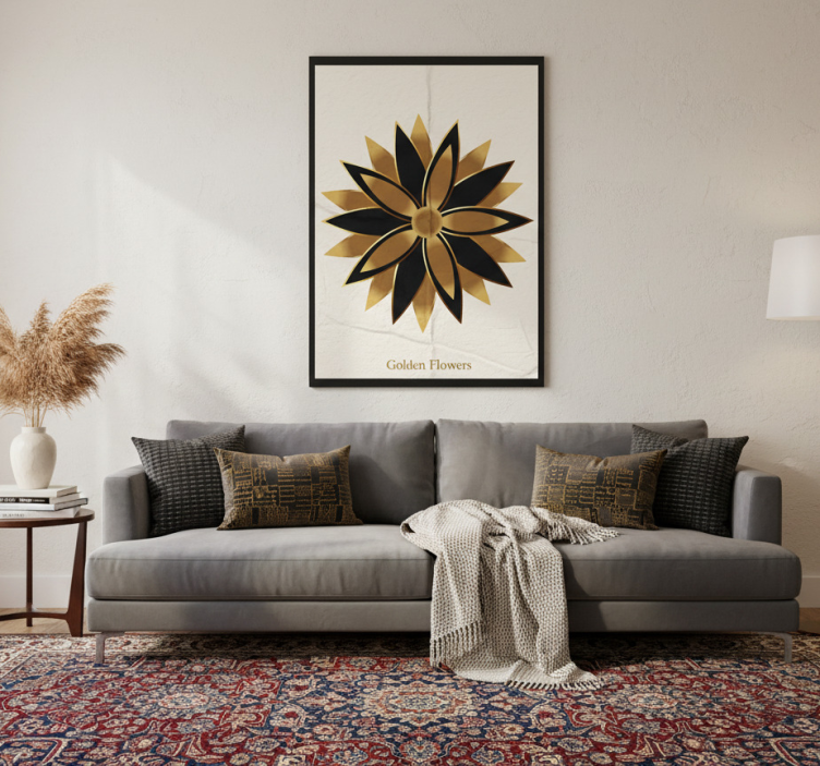 Η Aφίσα για το σαλόνι Χρυσά Λουλούδια δεν είναι απλά μία διακοσμητική επιλογή, είναι μία έμπνευση για τη δημιουργία ενός ζεστού και φιλόξενου χώρου. Η μοναδική της σχεδίαση θα προσθέσει χαρακτήρα και στυλ σε κάθε γωνιά του σαλονιού σας, κάνοντάς το να ξεχωρίζει. Αφήστε την ομορφιά των χρυσών λουλουδιών να σας περιβάλει και να σας εμπνέει καθημερινά!
