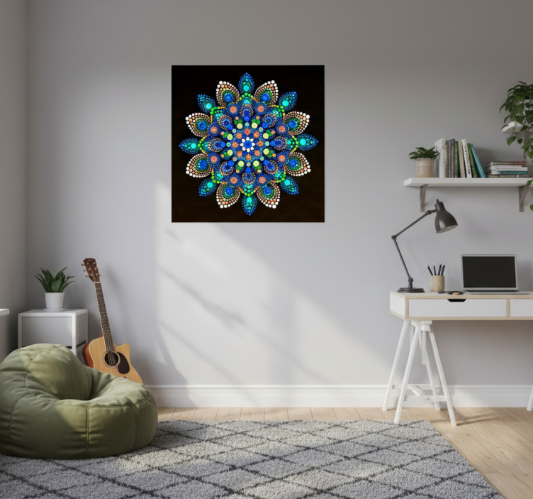 Η Aφίσα για το σαλόνι Aφίσα για το σαλόνι με πολύχρωμα σημεία μαντάλα είναι η ιδανική επιλογή για να μεταμορφώσει τον χώρο σας. Με την έντονη χρωματική της παλέτα και την καλλιτεχνική της διάσταση, θα αναδείξει την αισθητική σας και θα φέρει μια αίσθηση ζωντάνιας και χαράς! Δημιουργεί μια φιλόξενη ατμόσφαιρα που θα ενθουσιάσει τους επισκέπτες σας!