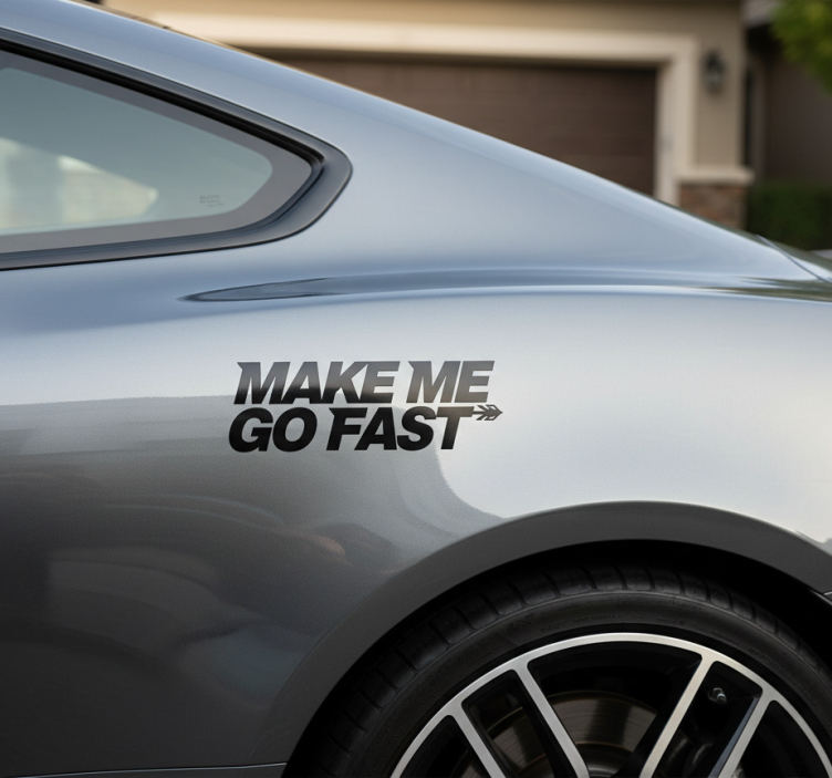 Αναφορά: A54677Ένα κομψό όχημα διαθέτει ένα τολμηρό σχεδιαστικό στοιχείο κοντά στο πίσω μέρος, μεταδίδοντας μια αίσθηση ταχύτητας και ενθουσιασμού για την οδήγηση. Η φράση 'MAKE ME GO FAST' τονίζει ένα παιχνιδιάρικο, περιπετειώδες πνεύμα, που απευθύνεται σε λάτρεις των αυτοκινήτων που εκτιμούν την απόδοση και την αδρεναλίνη του δρόμου.