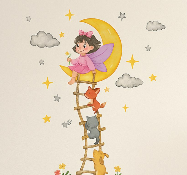 Αυτοκόλλητα τοίχου ζώα της ζούγκλας Σελήνη Κορίτσι