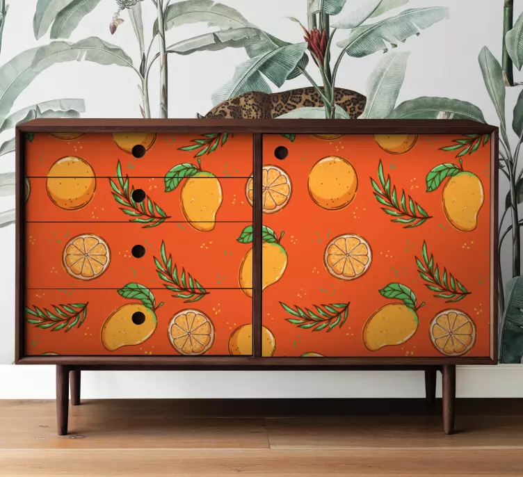 Ανακαλύψτε το Διακοσμητικό αυτοκόλλητο με σχέδιο εσπεριδοειδών, ένα μοναδικό γραφικό σχέδιο που συνδυάζει καρπούς, φύλλα και πολύχρωμα πορτοκάλια και λεμόνια. Η λάμψη αυτού του σχεδίου θα προσθέσει μια ζωντανή και χαρούμενη αίσθηση στα έπιπλα σας, κάνοντάς τα να ξεχωρίζουν. Τα φύλλα και οι καρποί δημιουργούν μια αίσθηση φρεσκάδας και φυσικότητας που θα ανανεώσει το χώρο σας!