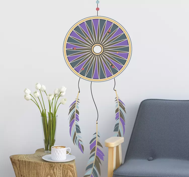 Το Διακοσμητικό αυτοκόλλητο Κονcept Ονειροπαγίδας συνδυάζει μία μαγευτική απεικόνιση με μωβ και πολύχρωμα στοιχεία, εμπνευσμένα από την παράδοση των Τσιγγάνων. Η σχεδίαση περιλαμβάνει μια εντυπωσιακή ονειροπαγίδα με φτερά και γεωμετρικά μοτίβα, που προσφέρει μία αίσθηση μαγείας και ονειρεμένης ατμόσφαιρας σε κάθε χώρο.