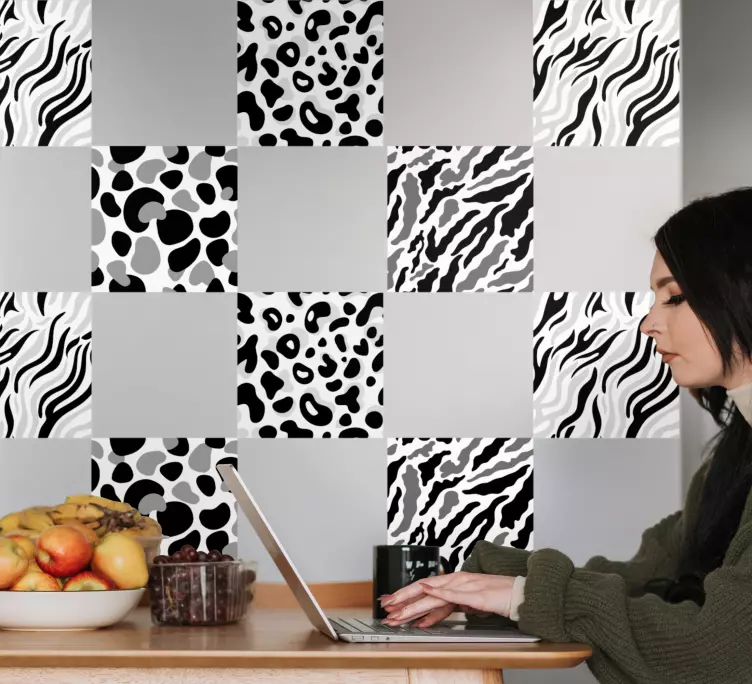 Ανακαλύψτε το Διακοσμητικό αυτοκόλλητο με κομψά διακοσμητικά πλακάκια, το οποίο συνδυάζει την αίσθηση της μοντέρνας τέχνης με την γεωμετρική και αφηρημένη σχεδίαση. Με έντονα χρώματα και εκλεπτυσμένα σχέδια, όπως λεοπάρδαλη και αποτύπωμα ζώου, το αυτοκόλλητο αυτό προσθέτει μια μοναδική υφή και χαρακτήρα σε κάθε χώρο. Τα πλακάκια του δημιουργούν μια εντυπωσιακή ατμόσφαιρα που ενθουσιάζει και εμπνέει!
