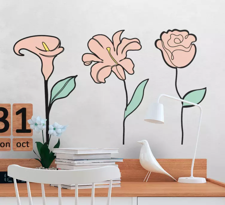 Το Αυτοκόλλητο λουλούδι είναι η ιδανική επιλογή για να αναβαθμίσετε τη διακόσμηση του χώρου σας. Η σύνθεση κομψών ανθών το καθιστά εξαιρετική επιλογή για να προσδώσετε μια αίσθηση κομψότητας και φινέτσας. Δημιουργεί μια ατμόσφαιρα που εμπνέει και χαλαρώνει, κάνοντάς το ιδανικό για σαλόνια, κρεβατοκάμαρες ή χώρους εργασίας. Αφήστε τη φαντασία σας ελεύθερη και δείτε πώς αυτό το αυτοκόλλητο μπορεί να μεταμορφώσει την καθημερινότητά σας!