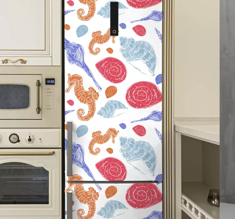 Αυτοκόλλητα ψυγείων με ιππόκαμπους και κοχύλια