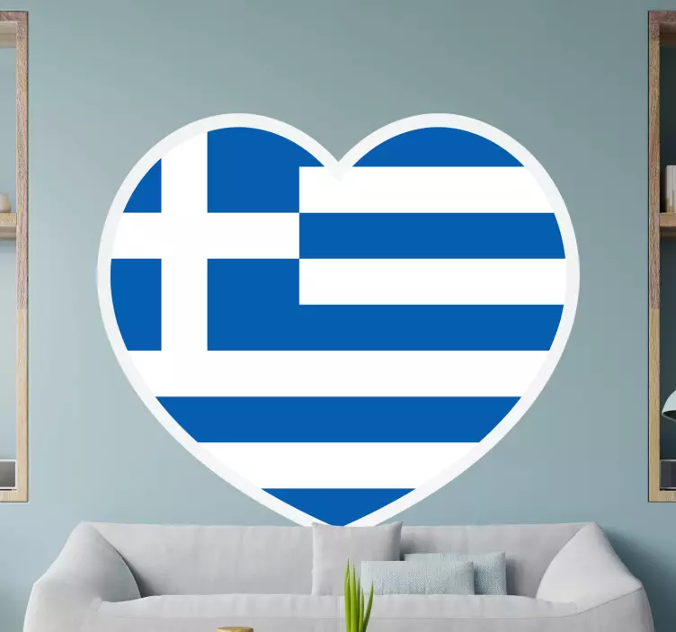 Διακοσμήστε το σαλόνι σας με την αναπαράσταση της ελληνικής σημαίας σε σχήμα καρδιάς. Μπορεί επίσης να ταιριάζει σε οποιονδήποτε άλλο χώρο προτιμάτε και η εφαρμογή του είναι εξαιρετικά εύκολη.