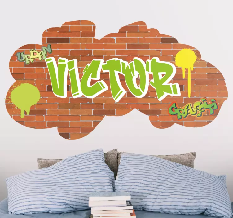 Αναφορά: A49593Ένα ζωντανό και προσαρμόσιμο κομμάτι που περιλαμβάνει ένα όνομα σε έντονο στυλ γκράφιτι σε φόντο τούβλου, διακοσμημένο με πιτσιλιές χρώματος. Ιδανικό για να προσθέσει μια προσωπική πινελιά σε οποιοδήποτε χώρο, αυτό το σχέδιο ενισχύει την αστική αισθητική ενώ επιτρέπει την ατομική έκφραση.
