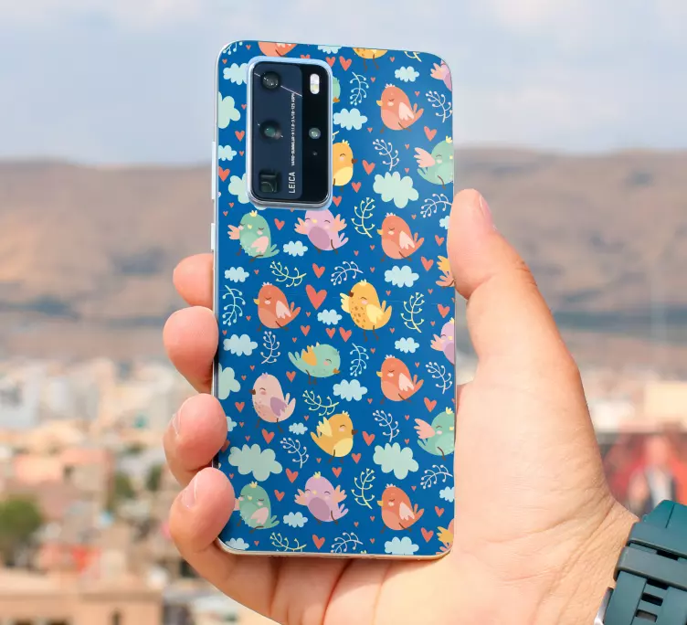 Το Αυτοκόλλητο huawei Ζωντανής Πουλιάς Σχέδιο διαθέτει ένα κινούμενο σχέδιο που αποτυπώνει πουλιά και καρδιές σε πολύχρωμα μοτίβα, δημιουργώντας μια παιχνιδιάρικη διάθεση για το τηλέφωνό σας. Οι σύννεφα και οι φωτεινές αποχρώσεις προσθέτουν μια αίσθηση ζωντάνιας, ιδανική για να ανανεώσετε την εμφάνιση της συσκευής σας!