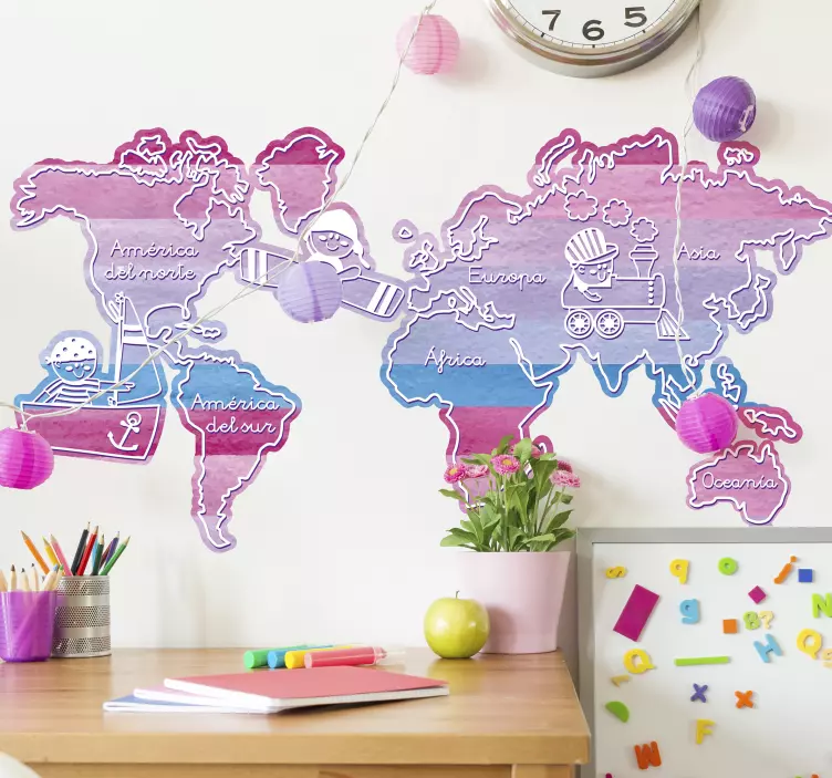 Αναφορά: A53517Αυτή η απεικόνιση περιλαμβάνει μια διασκεδαστική και πολύχρωμη αναπαράσταση ενός παγκόσμιου χάρτη, ενσωματώνοντας παιχνιδιάρικα στοιχεία όπως ένα "boat" και ένα "satellite". Είναι σχεδιασμένη να ενθουσιάσει την περιέργεια των παιδιών για τη γεωγραφία και να προάγει την εξερεύνηση, κάνοντάς την ιδανική για εκπαιδευτικούς χώρους.