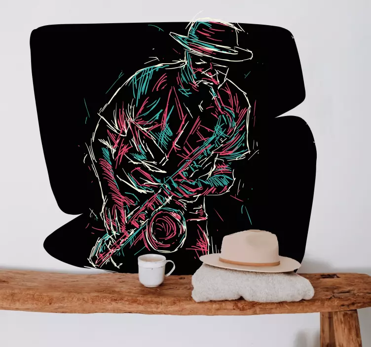 Ανακαλύψτε την απόλυτη δημιουργική προσθήκη για τον τοίχο σας με τα Αυτοκόλλητα τοίχου ζώα της ζούγκλας σαξοφωνίστας παίζει. Το γραφικό σχέδιο συνδυάζει την αφηρημένη τέχνη με στοιχεία τζαζ, δημιουργώντας μια μοναδική ατμόσφαιρα. Ο τζαζμαν που παίζει σαξόφωνο με το καπέλο του προσφέρει μια αίσθηση μουσικής και εκτέλεσης που θα ζωντανέψει κάθε χώρο!