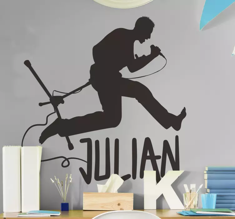 Ανακαλύψτε το Μουσικό αυτοκόλλητο Ενεργητική Φωνητική Ερμηνεία, μια εκπληκτική δημιουργία που συνδυάζει στοιχεία ροκ μουσικής, ροκ σταρ, και τραγουδιστών. Η σιλουέτα του καλλιτέχνη, μαζί με το όνομα και τα έθιμα της μουσικής, δημιουργεί μια δυναμική και ενεργητική ατμόσφαιρα. Είναι το ιδανικό στοιχείο για να προσθέσετε μια καλλιτεχνική και νεανική πινελιά στην διακόσμησή σας!