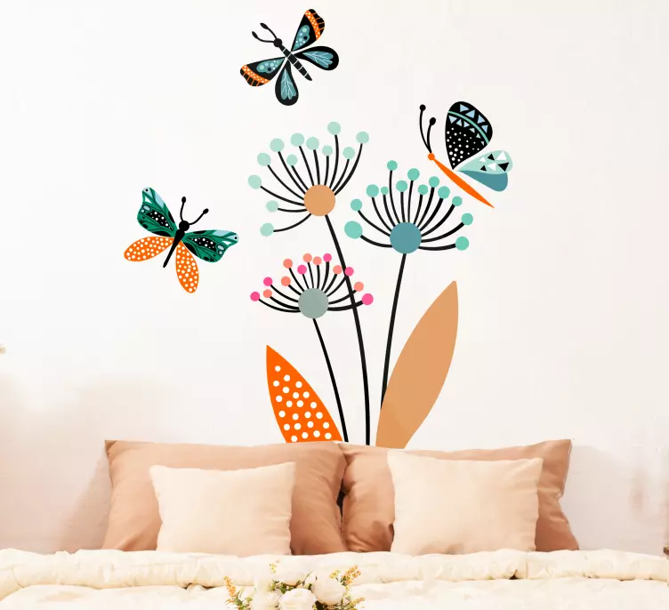 Αυτοκόλλητο με τη φύση πολύχρωμες λουλουδάτες πεταλούδες