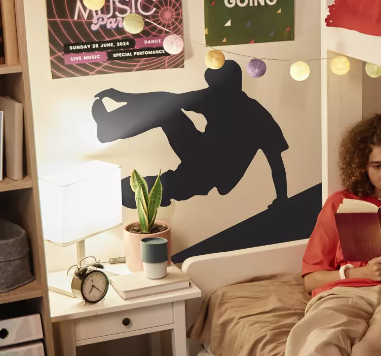 Αναφορά: A7549Αυτοκόλλητο τοίχου σιλουέτα ενός νεαρού άνδρα που θολώνει πάνω από έναν τοίχο καθώς περνά ελεύθερα στους δρόμους.