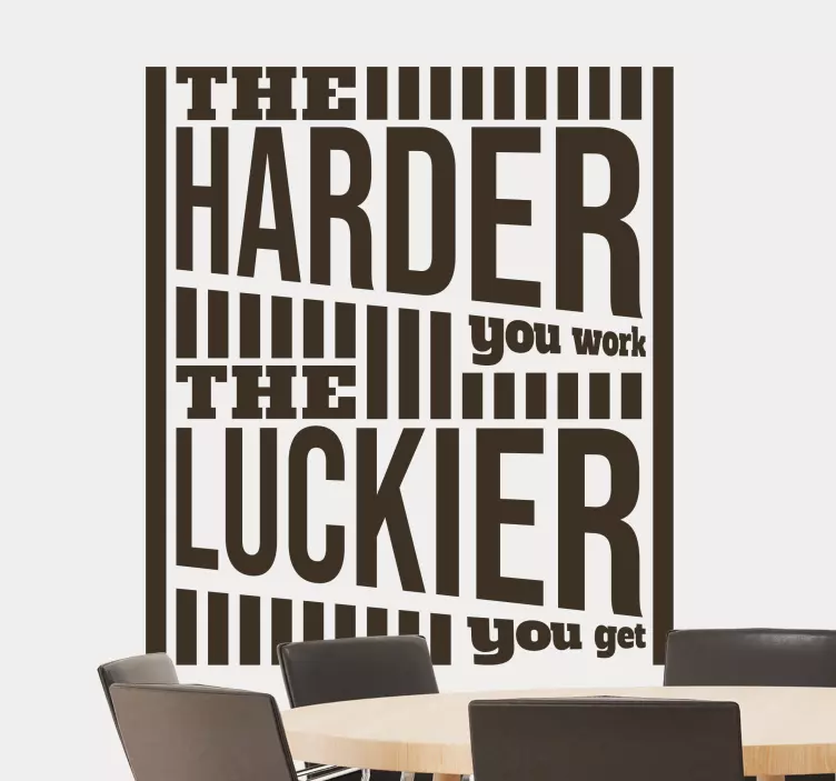 Αναφορά: A48010Ένα ισχυρό απόφθεγμα που τονίζει τη σχέση μεταξύ σκληρής δουλειάς και τύχης. Αυτή η εντυπωσιακή φράση λειτουργεί ως καθημερινή υπενθύμιση να αγωνιζόμαστε για την επιτυχία μέσω της αφοσίωσης και της προσπάθειας. Ιδανικό για γραφείο ή οικιακό περιβάλλον για να ενισχύσει την παρακίνηση και να εμπνεύσει δράση.