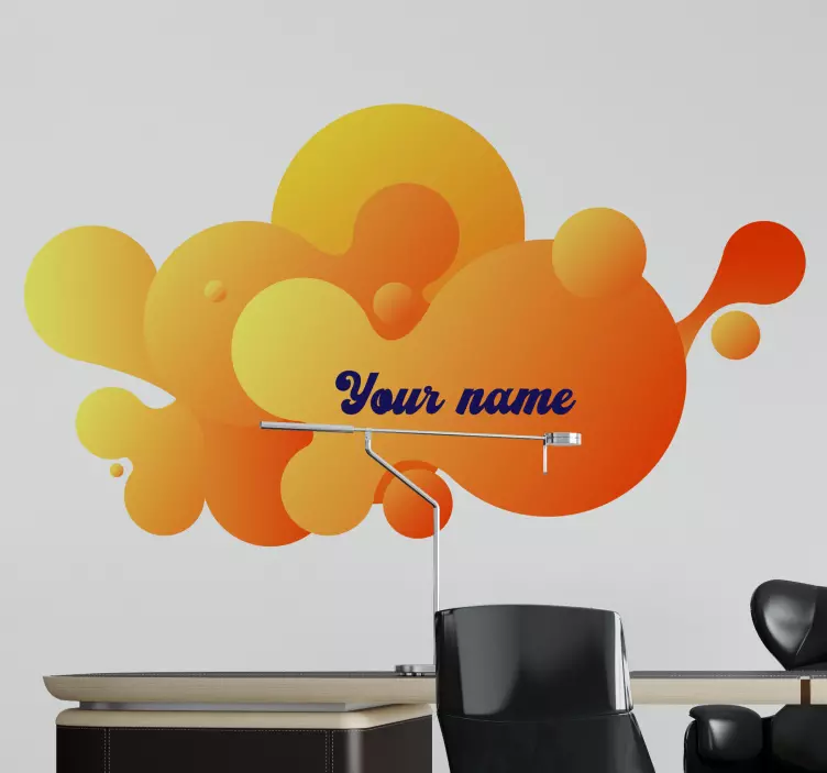 Διακοσμήστε το δωμάτιό σας με εξατομικευμένο τρόπο με αυτό το καταπληκτικό εξατομικευμένο αυτοκόλλητο! Σίγουρα θα φωτίσει το δωμάτιό σας! Ο σχεδιασμός δείχνει ένα υγρό ντεγκραντέ σύννεφα με πορτοκαλί χρώμα. Αυτό το εκπληκτικό γεωμετρικό decal μπορεί να τοποθετηθεί σε οποιοδήποτε δωμάτιο θέλετε. Χρησιμοποιήστε το στο υπνοδωμάτιο, στο σαλόνι ή στην κουζίνα σας εάν θέλετε!