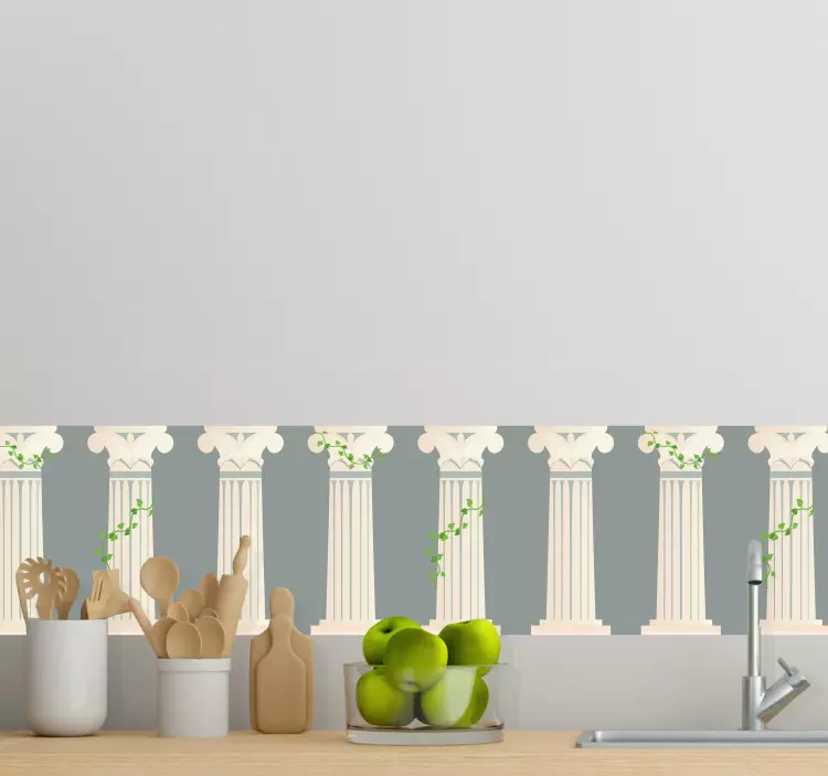 Ανακαλύψτε το Αυτοκόλλητο περίγραμμα κλασικής κολώνας, ένα κομψό σχέδιο που συνδυάζει στοιχεία από την ελληνική παράδοση με μοντέρνα αίσθηση. Το σχέδιο περιλαμβάνει στήλες και σύνορα, εμπνευσμένα από την άμπελο, που δημιουργούν μια ευχάριστη ατμόσφαιρα στην κουζίνα σας. Το εσωτερικό στυλ του είναι ιδανικό για να προσθέσει μία πινελιά κομψότητας στον χώρο σας!