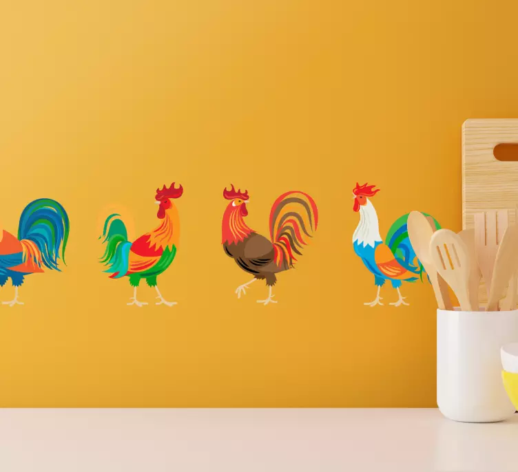 Αναφορά: A49028Μια ζωντανή έκθεση που περιλαμβάνει μια ποικιλία πολύχρωμων κόκορων, καθένας μοναδικός σε σχέδιο και στυλ. Αυτή η συλλογή προσθέτει μια παιχνιδιάρικη και ζωντανή αίσθηση στον χώρο, κάνοντάς την ιδανική για κουζίνες ή τραπεζαρίες.