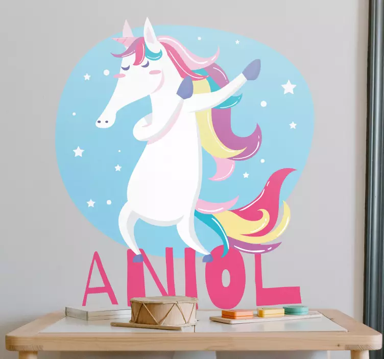 Η Αυτοκόλλητη Χρωματιστή Χορεύουσα Μονόκερος είναι ένα εκπληκτικό κομμάτι σχεδίασης που συνδυάζει τη μαγεία του μονόκερου με μια παιχνιδιάρικη και πολύχρωμη αισθητική. Φανταστική και γεμάτη φαντασία, αυτό το αυτοκόλλητο μπορεί να προσαρμοστεί με το προσαρμοσμένο όνομα του παιδιού σας, δημιουργώντας μια μοναδική ατμόσφαιρα στο δωμάτιο. Είναι ιδανικό για τους φθασιόπληκτους μικρούς φίλους σας!