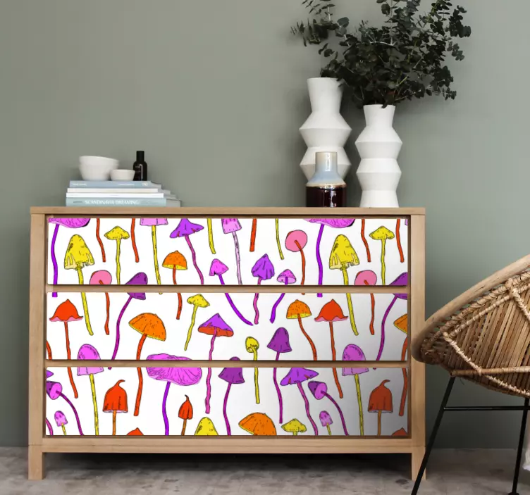 Ανακαλύψτε την μαγεία της φύσης με τα Αυτοκόλλητα τοίχου ζώα της ζούγκλας πολύχρωμα μανιτάρια. Αυτή η μοναδική συλλογή συνδυάζει μανιτάρια, παραισθησιογόνα σχέδια και χλωρίδα σε μια εντυπωσιακή απεικόνιση που θα φωτίσει το χώρο σας. Τα πολύχρωμα μανιτάρια προσθέτουν μια παιχνιδιάρικη αίσθηση στα έπιπλα σας, δημιουργώντας μια ατμόσφαιρα γεμάτη ζωή και φαντασία!