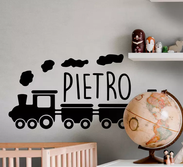 Το αυτοκόλλητο για παιδιά με όνομα τρένου είναι ένα παιχνιδιάρικο και εξατομικεύσιμο σχέδιο που αποτυπώνει τη μαγεία του κόσμου των τρένων. Με μια ζωντανή απεικόνιση και δυνατότητα προσαρμογής του ονόματος του παιδιού σας, αυτό το αυτοκόλλητο θα φέρει χαρά και χρώμα στο δωμάτιο του παιδιού σας, με την αίσθηση της μεταφοράς σε μια φανταστική περιπέτεια!