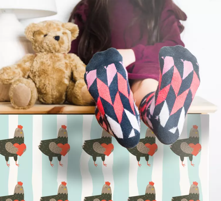 λευκή και μπλε ριγέ σχεδίαση με κόκορες για έπιπλα