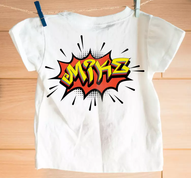 Αναφορά: T4538Αυτός ο παιχνιδιάρικος σχεδιασμός περιλαμβάνει μια ζωντανή έκρηξη σε στυλ κόμικ με το όνομα 'Mike' να προβάλλεται έντονα. Οι bold χρωματισμοί και τα δυναμικά σχήματα δημιουργούν μια ενεργητική αίσθηση, ιδανική για μια διασκεδαστική και χαρούμενη ατμόσφαιρα για παιδιά.